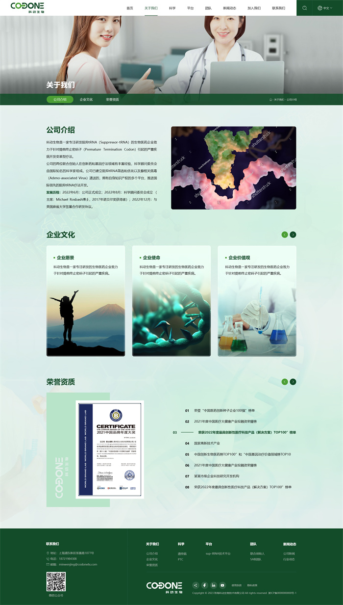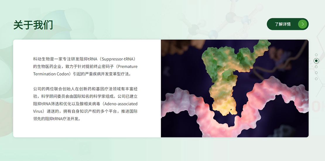公司成立初期,需要借助挂官网对外梳理专业的品牌形象,让用户、投资者、上下游合作伙伴等通过网站了解科动生物中是一家怎样的公司。