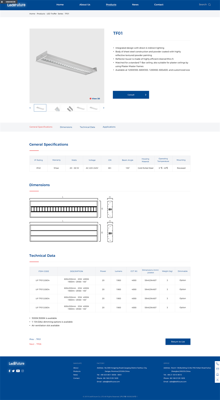 莱迪弗彻照明的业务增加国外市场,所以网站单独制作英文版本,主要向用户展示公司介绍、解决方案、产品系列以及B体育BSport等信息。